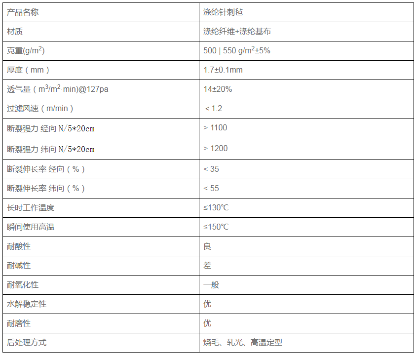 滌綸針除塵布袋選用滌綸細旦大化纖維絲,以設備生產(chǎn)滌綸(聚酯)纖維針刺過濾氈,可將多種纖維均勻定量混合,再用多臺混開棉機組及梳理機組利于纖網(wǎng)之間不同纖維間層裝復合、梯度變換。