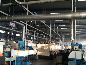 室內(nèi)管網(wǎng)采用鍍鋅螺旋管,(軟管和連接部位除外),較小直徑的螺旋管壁厚為0.8mm.其余管徑壁厚應(yīng)滿足通風(fēng)量的需要,管網(wǎng)的吊掛_了車間的美觀大方,牢固。