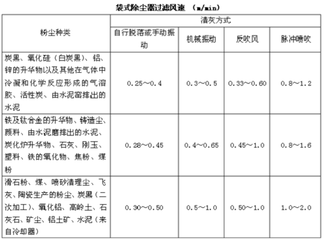 一般風(fēng)速可以到1.0-1.5,玻纖覆膜1.0以下,火電廠0.9以下,好的是0.8左右,生物質(zhì)發(fā)電,風(fēng)速可能以0.7以下為好,常溫袋過濾風(fēng)速控制在1.2m/min;高溫袋過濾風(fēng)速控制在1.0m/min為宜。布袋除塵器過濾風(fēng)速的大小,是和多方面有關(guān)的,主要取決于粉塵特性及濃度大小、氣體特性、濾料品種以及清灰式。對于粒細(xì)、濃度大、粘性大、磨啄性強(qiáng)的粉塵,以及高溫、高濕氣體的過濾,布袋除塵器過濾風(fēng)速宜取小值,反之取大值。對于濾料,機(jī)織布阻力大,過濾風(fēng)速取小值,針刺氈開孔率大小。