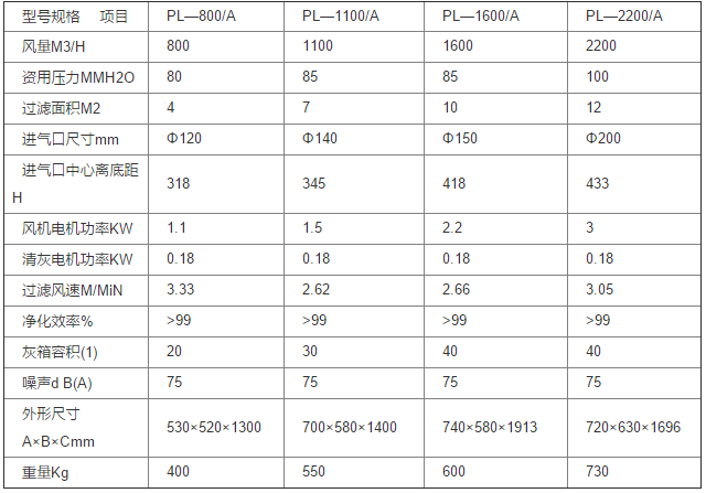 華康中天PL單機(jī)除塵器規(guī)格型號(hào)參數(shù)可供參考
